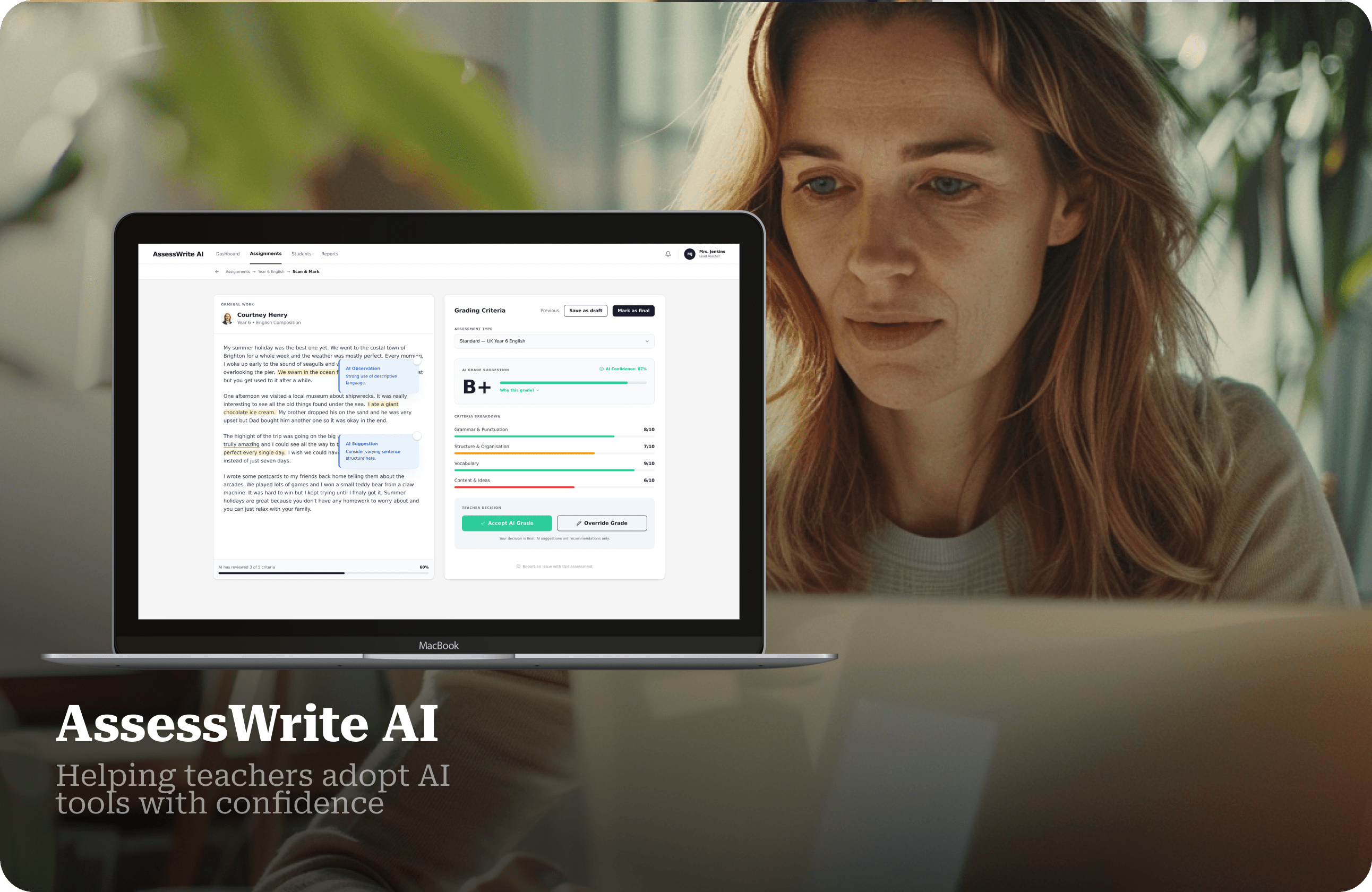 AssessWrite AI | Designing trust into AI — a funded EdTech prototype validated by 50+ teachers.